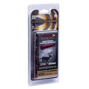 Federal Muzzleloader Primers is a part of a whole new muzzleloader system that uses a primer inserted into an encapsulated powder charge. The FireStick is a premeasured self-contained powder charge filled with an exact charge of either 100 or 120 grains of all-new, ultra-clean black powder substitute Hodgdon™ Triple 8 granular powder. With the Federal™ Firestick the bullet is loaded separately and independently from the muzzle to seat on top of a bullet shelf inside the barrel of the rifle.