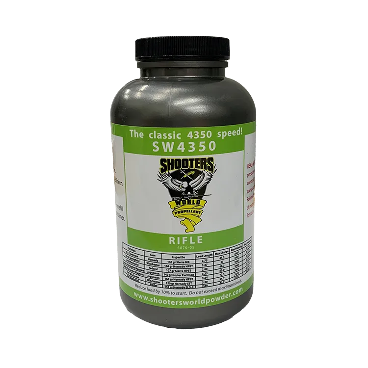 Shooters World SW4350 Smokeless Powder is a versatile and reliable choice for reloaders who prioritize performance and consistency. Ideal for medium to large rifle calibers like 6.5 Creedmoor, 270 Winchester and 30-06 Springfield. This powder delivers exceptional accuracy and dependable results, whether you’re shooting at the range or in the field. Its consistent burn rate and temperature stability help maintain precision across a variety of loads and shooting conditions. With clean-burning properties, SW4350 minimizes residue, making firearm maintenance easier and enhancing the lifespan of your equipment. For hunters and target shooters alike, this powder is a trusted companion for crafting tailored, high-performance loads.