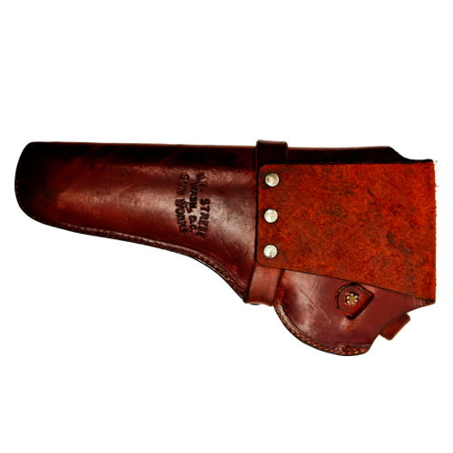 The Strebe Gun Works holster is a noteworthy accessory for the Smith & Wesson Model 1917 Brazilian revolver. Known for their craftsmanship, Strebe Gun Works produced high-quality leather holsters that were both durable and functional.