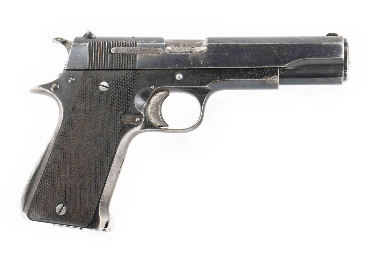 The Star Model B is Spain’s iconic, all‑steel, single‑action service pistol, produced from 1924 to 1983 and patterned after the M1911. Chambered for 9mm Luger with an 8‑round magazine, it uses a short‑recoil, locked‑breech system and sports a 5″ barrel, fixed sights and checkered hardwood grips. Weighing about 37 oz, the Model B saw front‑line use in conflicts from the Spanish Civil War to Rhodesia and remains prized for its smooth trigger and robust construction. This model is C&R Eligible.