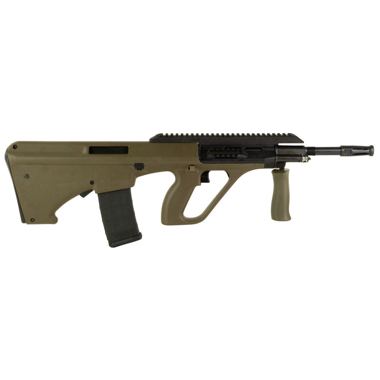 The “Bullpup” design maintained its short overall length, without influencing the barrel length, to meet or exceed required accuracy standards. The STEYR AUG A3 features a number of Picatinny rails (Mil. Std. 1913 rails), which allow the quick and easy mounting of various accessories, such as illumination and target acquisition devices, including a variety of optics or night vision devices.