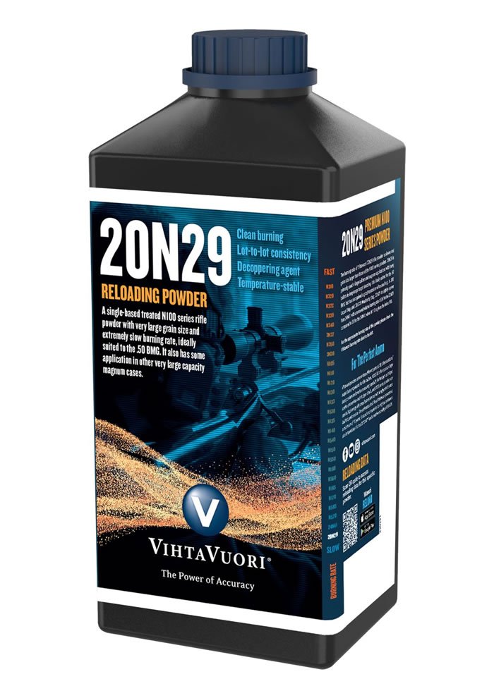 The burn rate is slower and the grain size is greater than in the N100 series powders. Vihtavuori 20N29 Powder For Sale is most often employed in large caliber and magnum applications with heavy bullets, as well as long-range target shooting. It is most suited for the.50 BMG, although Vihtavuori 20N29 Powder has also proven effective in the.300 Lapua Magnum and.30-378 Weatherby Magnum.