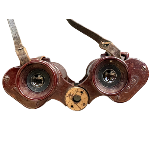 This is an Original WW2 German Wehrmacht Officer Dienstglas 6×30 “CXN” Binoculars, constructed from brown bakelite—a material widely used during the war due to metal shortages and economic restrictions. These field-issued binoculars were a vital part of German infantry equipment, providing officers with essential battlefield visibility and tactical advantage.
