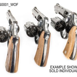The majority of these revolvers were downgraded from Good condition only because the wood grips are chipped, cracked, or broken. A small handful have a frozen or stiff cylinder release, and another portion have speckled pitting on the barrel and frame.